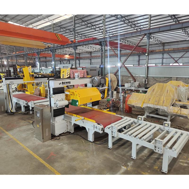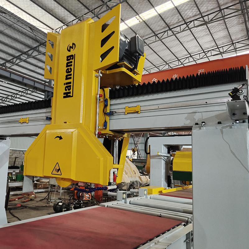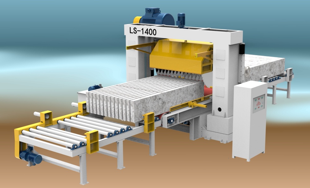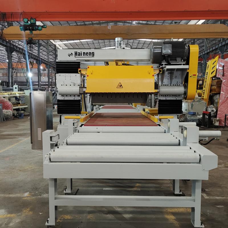 Станок для обработки бордюрного камня оснащен автоматической подачей в продольном направлении (фиксированная ширина), автоматической резкой в продольном направлении (фиксированная ширина), автоматической подачей в поперечном направлении (фиксированная длина), автоматической резкой в поперечном направлении (фиксированная длина) и автоматической выгрузкой для следующего этапа обработки. Последующие этапы обработки могут быть сконфигурированы с фаской, шерохованием поверхности и другим необходимым технологическим оборудованием, обеспечивая интеллектуальную работу на протяжении всего процесса.